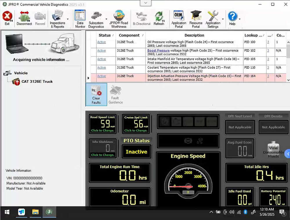 Caterpillar off-highway equipment owners will also benefit from the update, as JPRO now supports an additional 486 models. This expanded support enables JPRO to read proprietary diagnostic fault codes, event codes, data, and perform bi-directional functions.