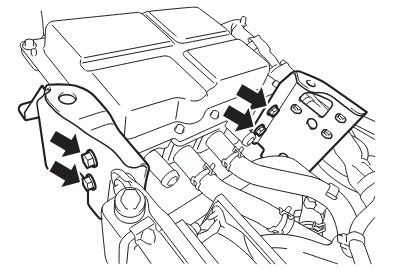 6. Remove 4 bolts to detach Inverter Bracket No. 2 and Inverter Bracket No. 3 from the inverter.