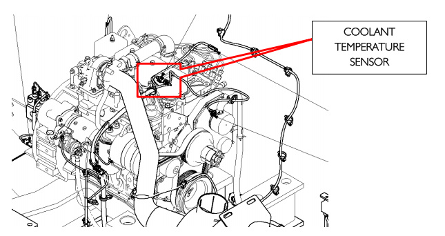 • Inspect the wire harness and ensure it is securely connected to the coolant temperature sensor on the engine.