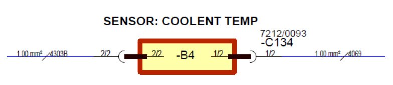 - Disconnect the coolant temperature sensor and MECU. Use a multimeter to check connectivity between circuit numbers 4303B and 4069. Refer to the provided photograph for reference.