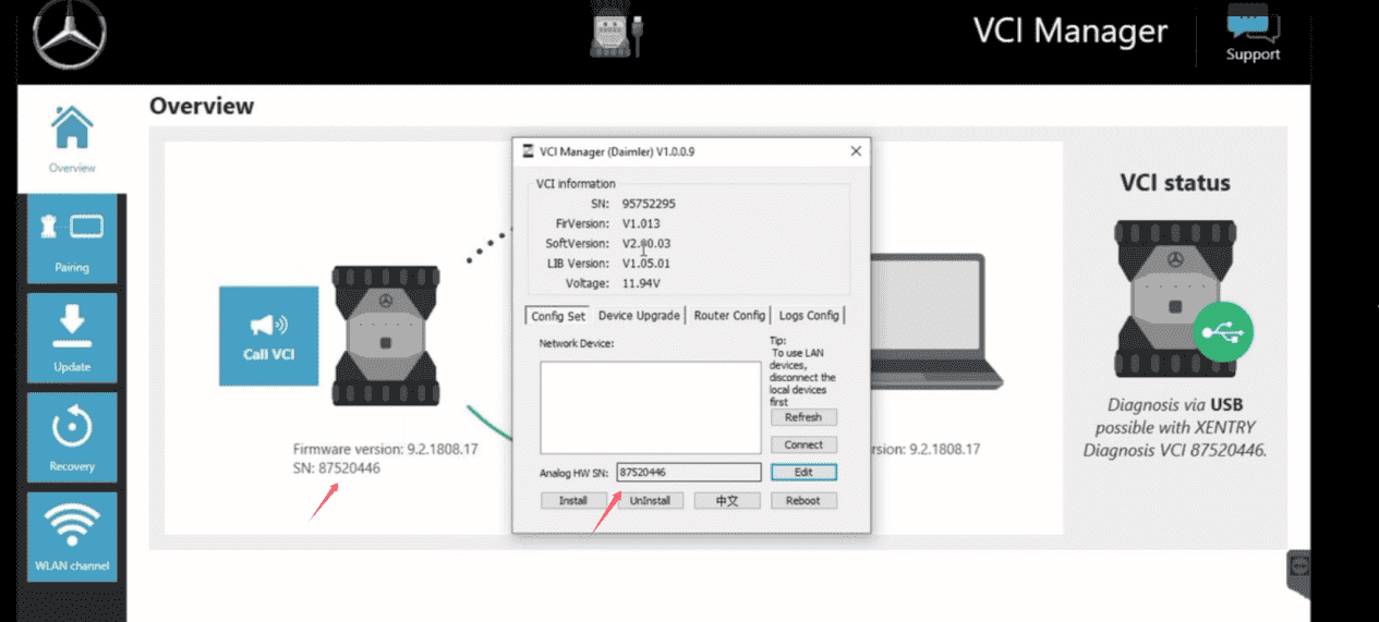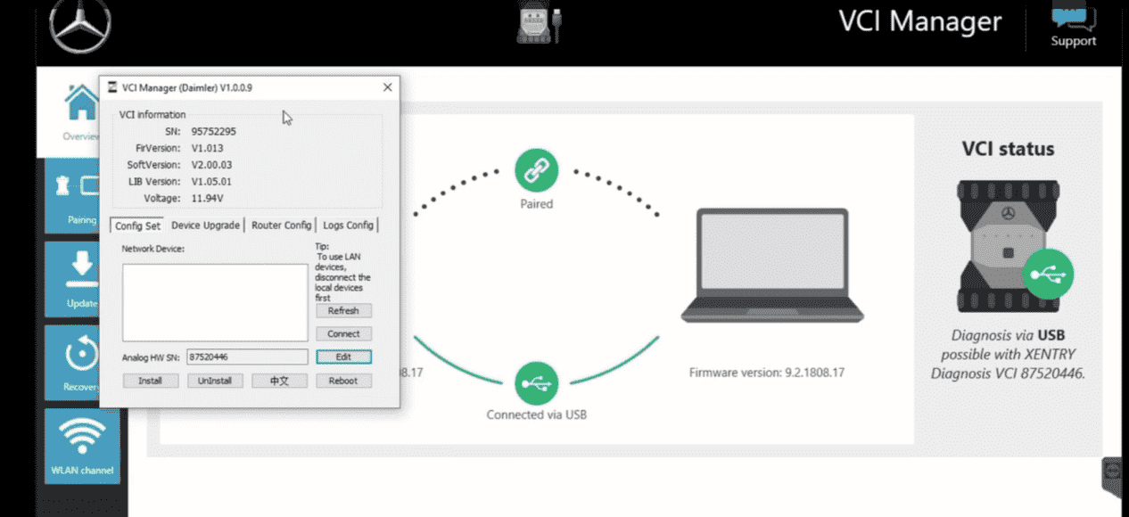 To ensure stable communication with Xentry Diagnostic, the C6 driver must be installed correctly, and the serial number must match the VCI.