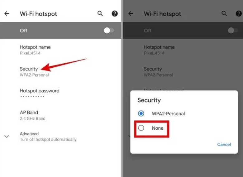 For Android phones, check the hotspot security settings: